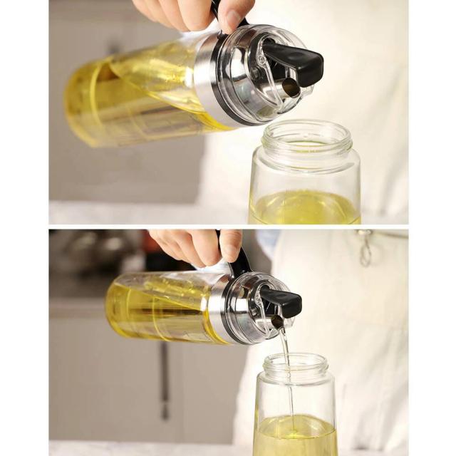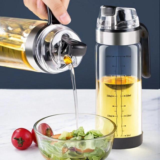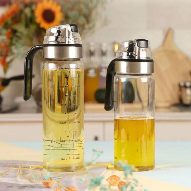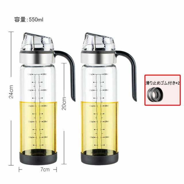 オイルボトル オイルポット 液だれしない 自動開閉 オイル差し 調味料入れ 醤油差し 油差し 計量カップ ガラス おしゃれ 家庭キッチン 飲食店 研磨器 550ml 2個