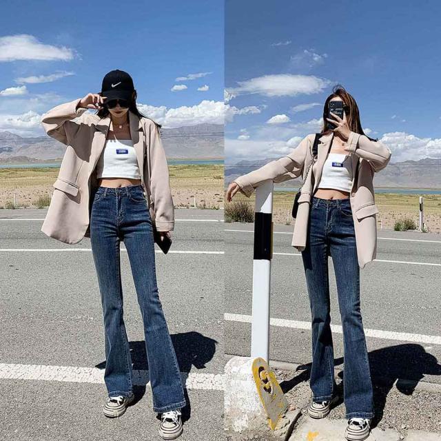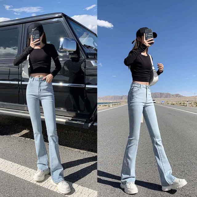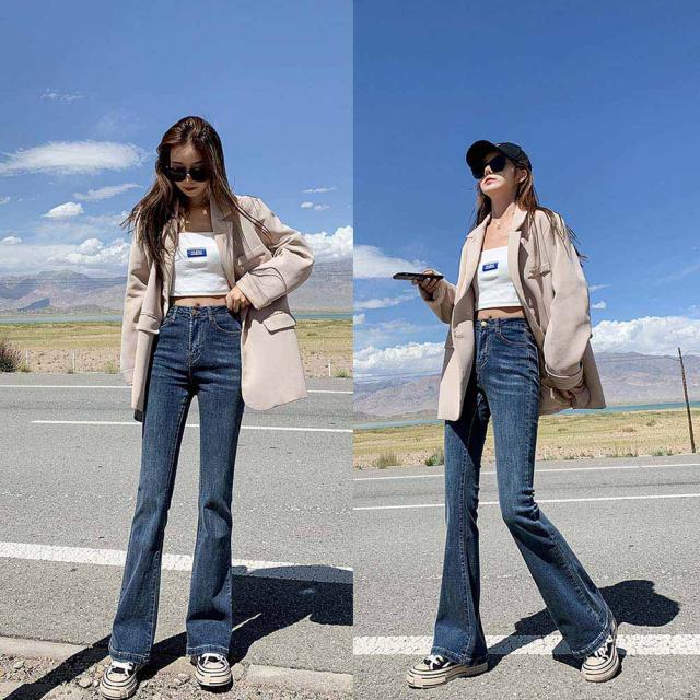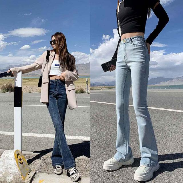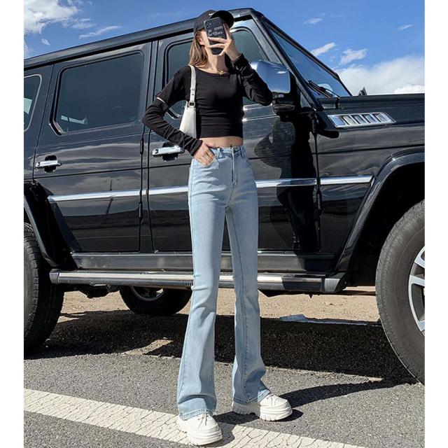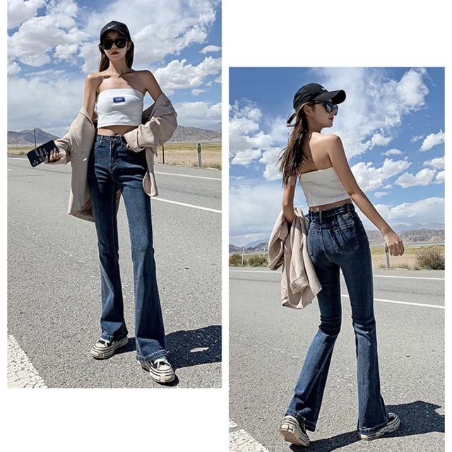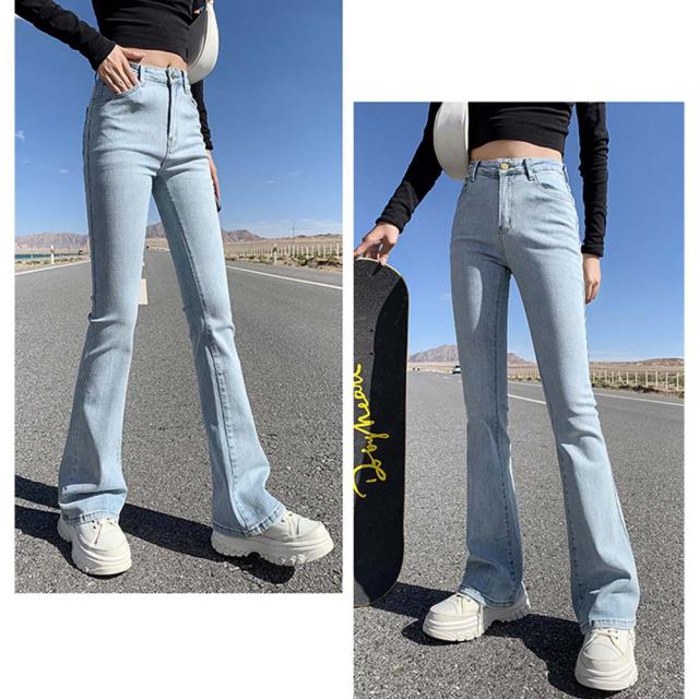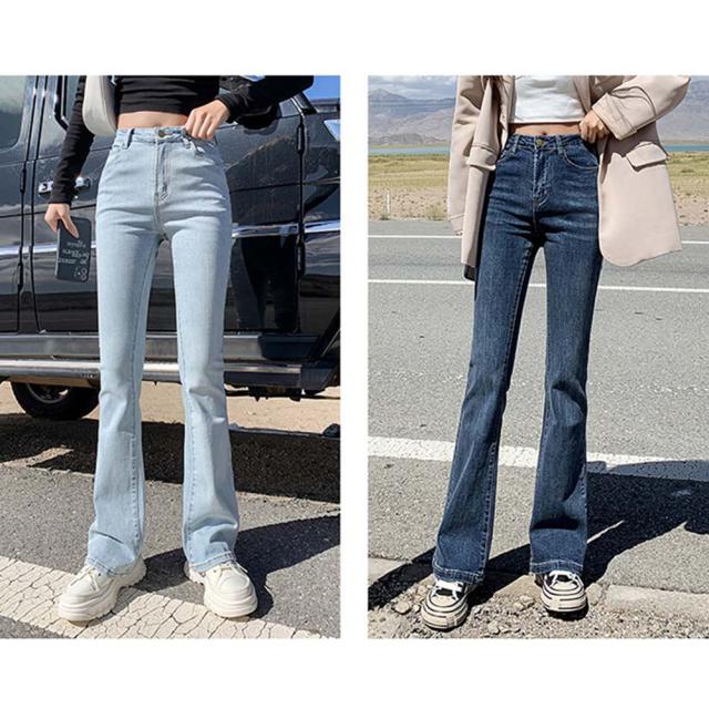 デニムパンツ レディース ストリート フレア ジーパン ストレッチ ハイウエスト