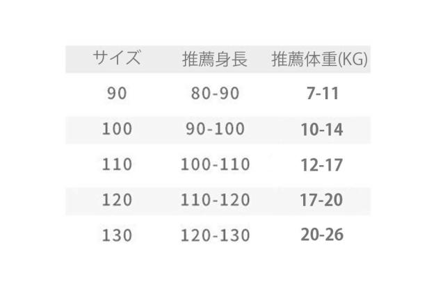 3XL:参考身長120-130cm 参考体重20-26.5kg