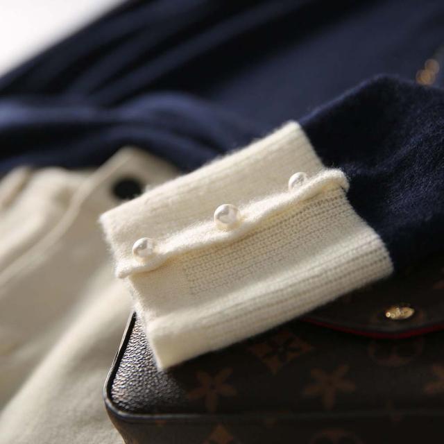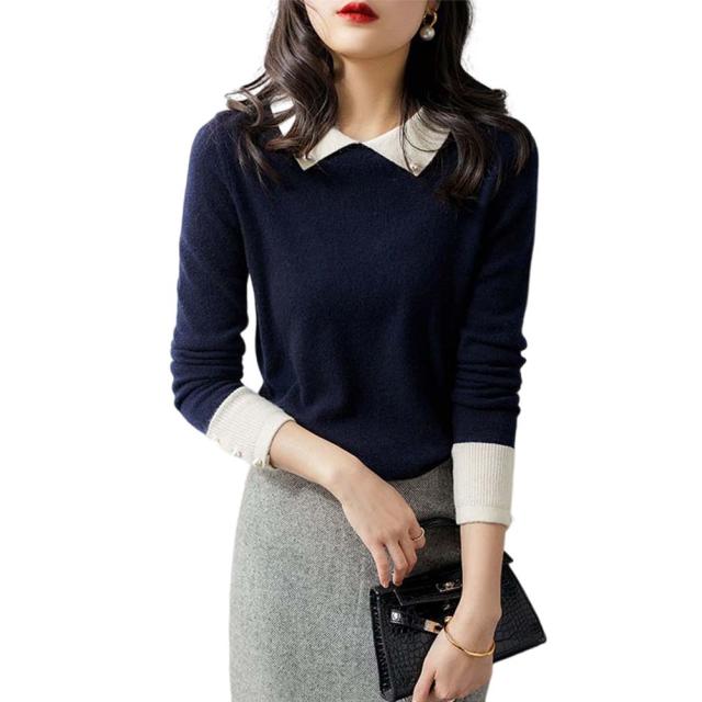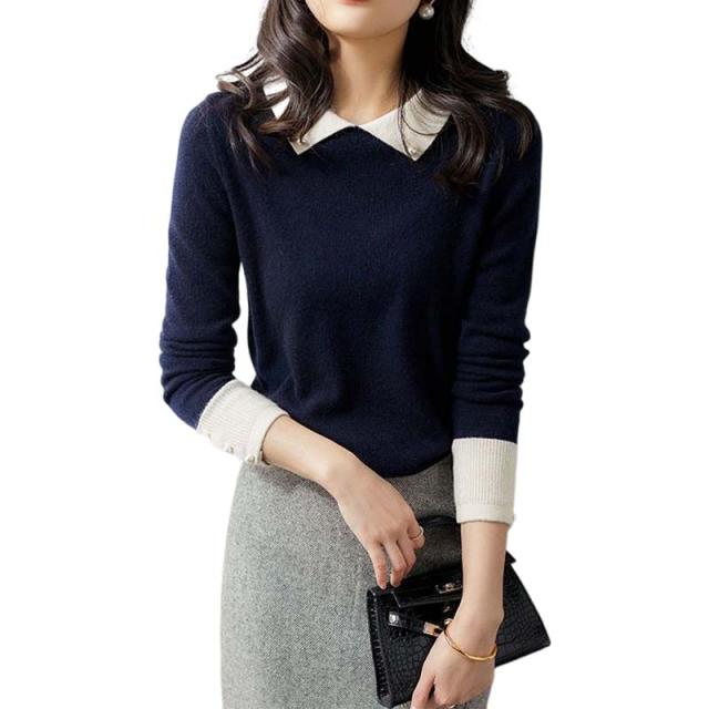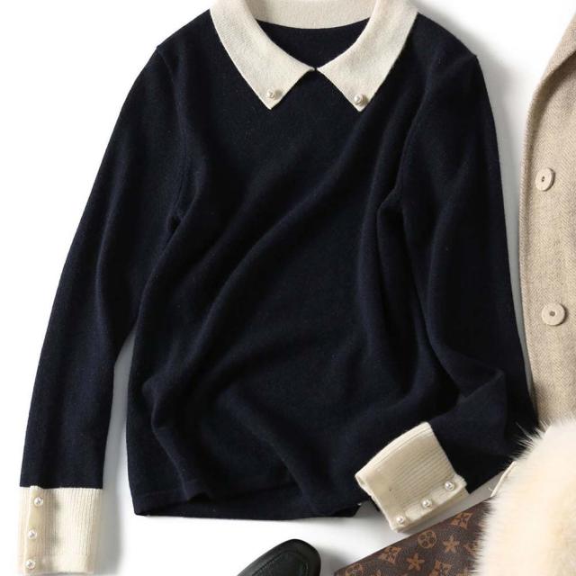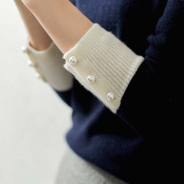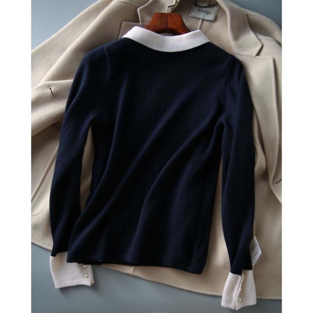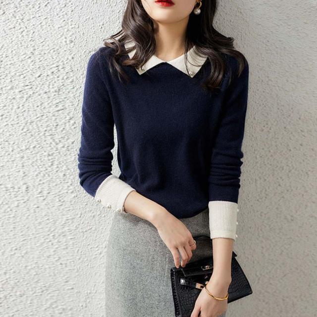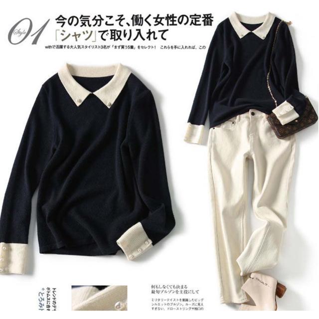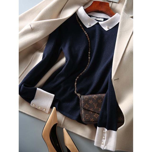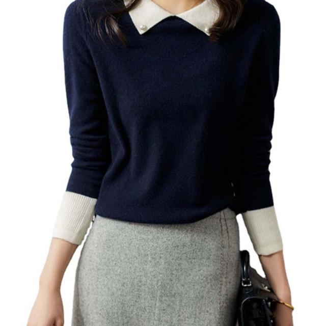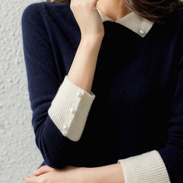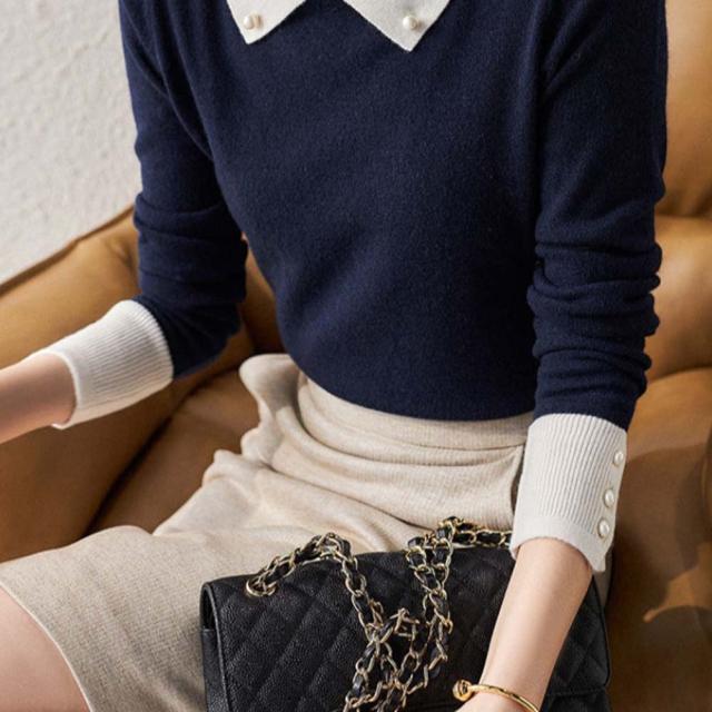 韓国ファッション トップス ニット カラー 襟 スリム 細身 タイト 配色 コントラスト 襟コンシャス 大人 エレガント 高見え 高級感 お出かけ オシャレ着 カジュアル 秋 冬
