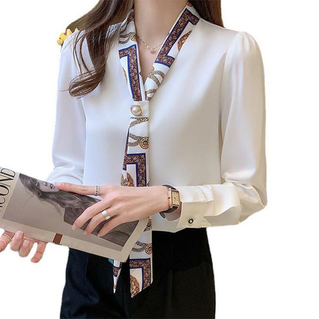 シャツ レディース レトロ Vネック パフスリーブ OL エレガント 着痩せ シンプル 体型カバー ゆったり 長袖 普段着 通勤
