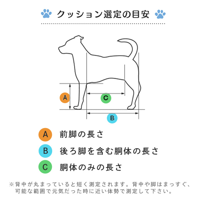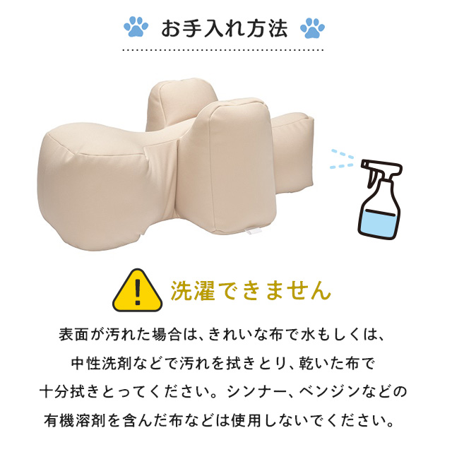 クッションのサイド部の前方に前脚、後方に後脚がくるようにワンちゃんを乗せてください。