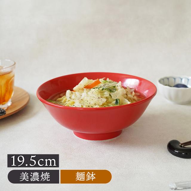 ラーメンどんぶり 19.5cm 1070cc 反高台 赤 丼ぶり 丼 麺鉢 ボウル 鉢 大鉢 和食器 おしゃれ 食器 ラーメン鉢 うどん丼ぶり そば丼ぶり 丼物 カフェ丼 カフェ風