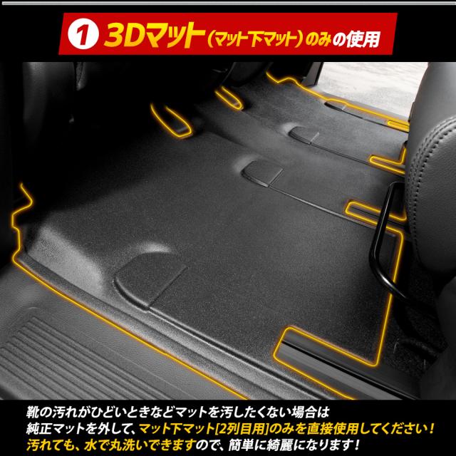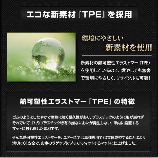 車種専用完全オリジナルデザインの3Dセカンド(2列目)マットが新発売 車種専用なので隅々までぴったりフィット! 経験豊富な専任のスタッフが一から製作しているので、他社製品にはないデザインと仕上がりをお届けします。 本品は置くだけの簡単設置で2列目の汚れや傷、シートレールへの砂や泥の侵入を防ぎます! 3Dの立体デザインで縁部分は数センチの立ち上がりがあるので水や汚れをしっかりキャッチ! 完全防水なのでお手入れも簡単! 水や汚れは軽いものならウエスなどで拭くだけでOK! 全面的に汚れた場合は丸洗いも可能なので衛生的です。 新素材の熱可塑性エラストマー(TPE)を使用。 弾力があり、曲げたりすることも可能なので、お車からの取り外しも容易です。 |