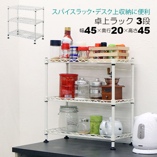 卓上 ラック ミニ 3段 45幅 収納 棚 おしゃれ ミニラック キッチンラック ホワイト 白 幅45cm 奥行20cm 高さ45cm 頑丈 丈夫 デスク上 シンク下 収納 三段ラック オープンラック スチールラック 隙間収納 スパイスラック コンパクト 一人暮らし ワンルーム シンプル 可動棚