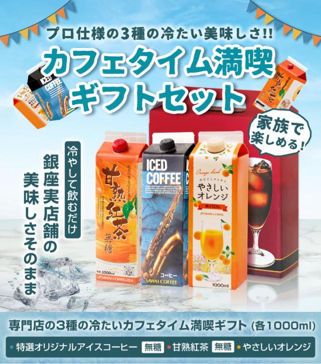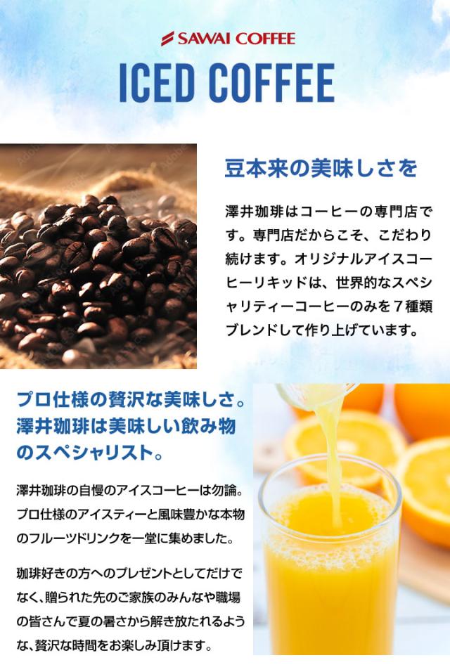 澤井珈琲のコーヒーギフト 無糖アイスコーヒー&アイスティー(甘熟紅茶)とやさしいオレンジ ファミリーで楽しむ飲み物ドリンクセット 送料無料 プレゼント ギフトセット 贈答品