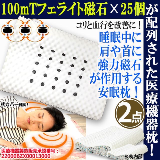 睡眠中に肩や首に強力磁石100m×25個が作用する安眠枕!