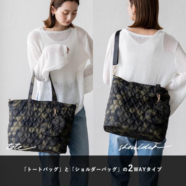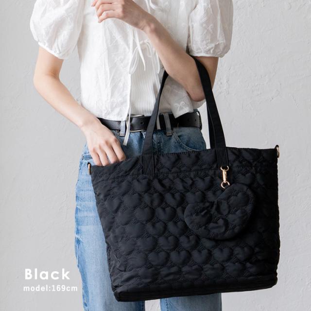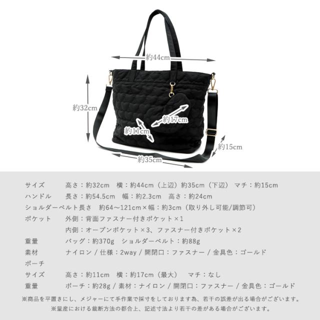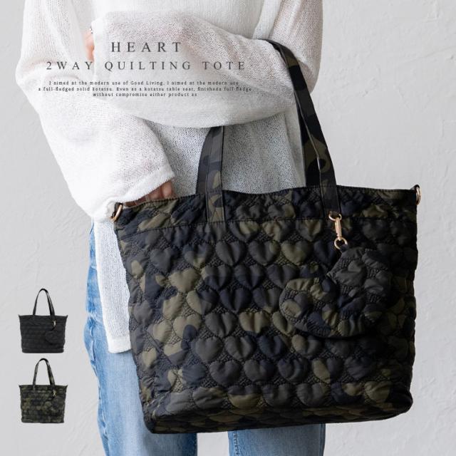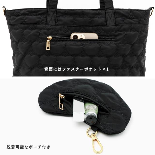 トートバッグ レディース 大きめ 軽量 a4 キルティング ハート型 2way ポーチ付き 大容量 天ファスナー 肩掛け 斜めがけ マザーズバッグ ナイロンバッグ 通勤バッグ お仕事バッグ 仕事 春夏 夏バッグ nsb-30221z【aroco/アロコ】敬老の日 プレゼント新生活