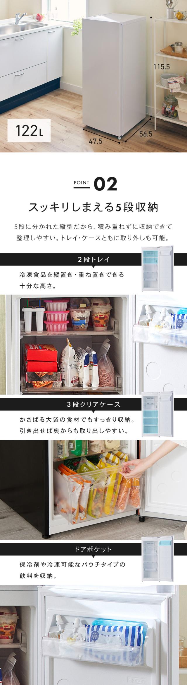 容量122Lの冷凍/冷蔵切り替え可能な冷凍庫です。