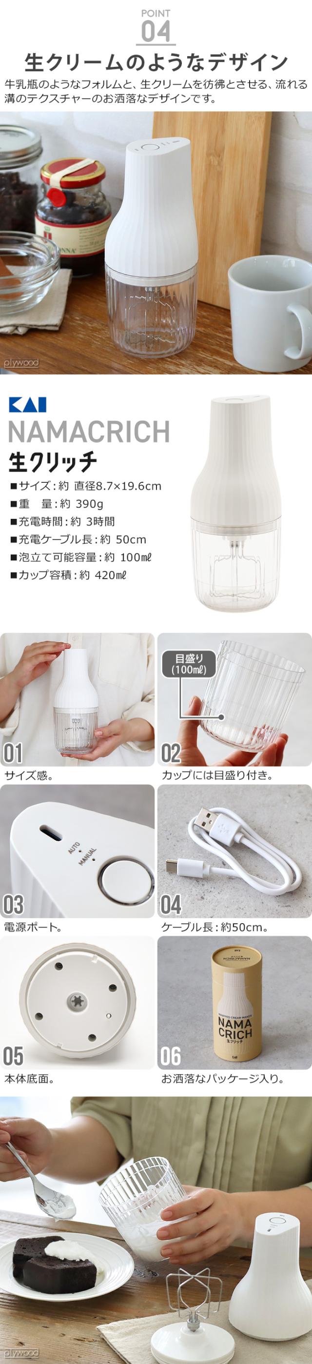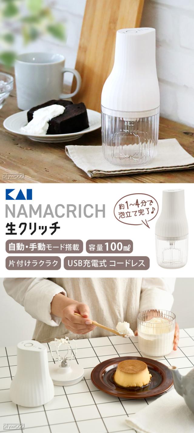 【2大特典付】泡立て器 電動 生クリーム 電動泡だて器 コードレス 貝印 自動生クリームホイッパー 生クリッチ KAI NAMACRICH 000DK5150 コンパクト 電動ホイッパー USB充電式 食洗機対応 お菓子作り オフィス 自動 お手軽 ギフト おしゃれ プレゼント 送料無料