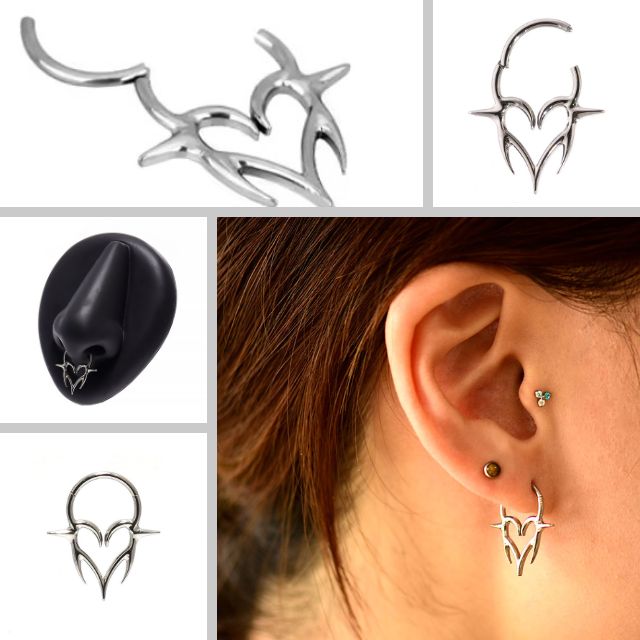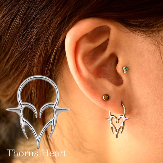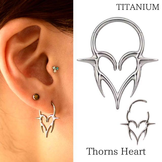 ボディピアス リング 軟骨ピアス 16G ワンタッチリング thorns Heart ハートピアス 金属アレルギー対応 チタンピアス セグメントリング ボディピ軟骨 ピアス なんこつぴあす Pierce リングピアス