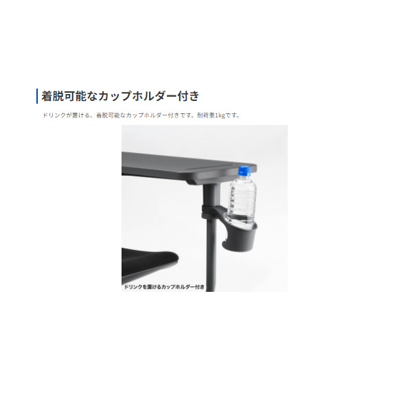 ドリンクが置ける、着脱可能なカップホルダー付きです。耐荷重1kgです。