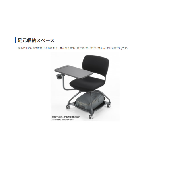 座面の下に荷物を置ける収納スペースがあります。内寸約420×420×210mmで耐荷重25kgです。
