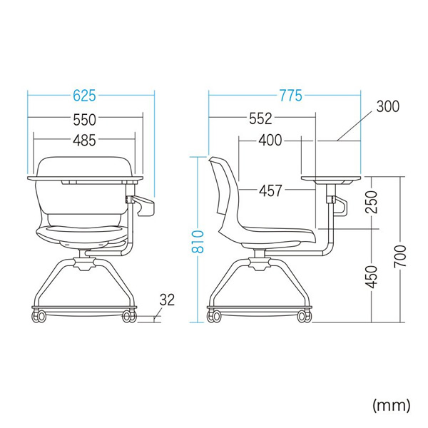 色々な場面で使用できるサイドテーブル付きミーティングチェア ■サイズ 約W625×D775×H810mm サイドテーブル/W550×D300mm 背もたれ/W485×H350mm 座面/W485×D457×H450mm 脚幅/520mm ■重量:約16.8kg ■出荷形態:ノックダウン組立式(お客様組み立て) ■材質 張り地/布(ポリエステル) 主要成形部品/スチール クッション材/ウレタンフォーム サイドテーブル/MDF 収納スペース・カップホルダー/PP キャスター/ウレタン ■耐荷重:座面/100kg ■キャスターの有無:あり ■本体機能:サイドテーブル、座面下収納スペース ※記載は商品仕様の一部です。仕様説明不足等の理由での返品はできません。特に適合等は必ずご確認ください。