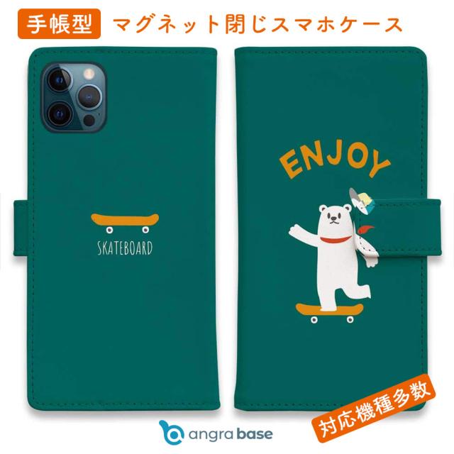 スマホケース 手帳型 カード収納 マグネット iPhone17 Pro Max iPhone Air iPhone16e iPhone16 Pro Max 16 Plus 15 Pro Max Xperia 10 VII Galaxy AQUOS ARROWS Pixel10 XL しろくま 白熊 白クマ シンプル おしゃれ エンジョイスケボーシロクマさん(wakat)