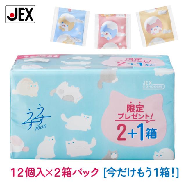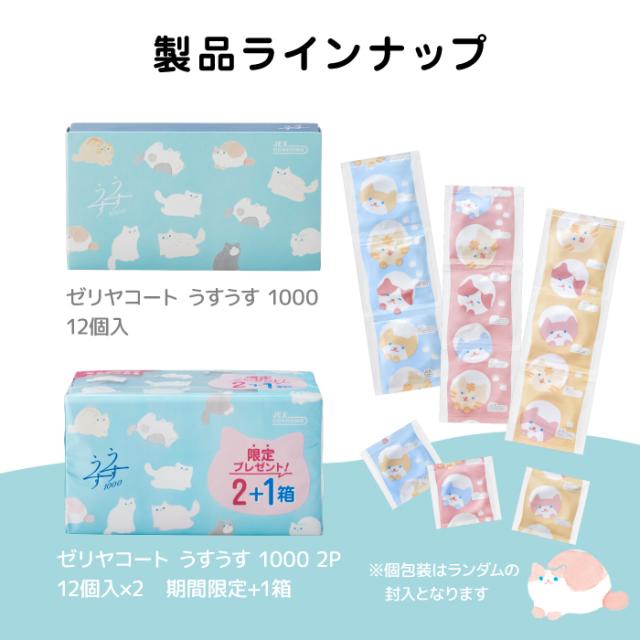 商品名:コンドーム ゼリヤコート うすうす 1000 2プラス1箱 ネコデザイン 12個入×3箱 メーカー直営
