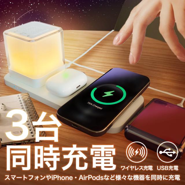 照明機能はもちろん、ワイヤレス充電器として置くだけでワイヤレス充電対応のスマートフォンやワイヤレスイヤホンを充電できます。