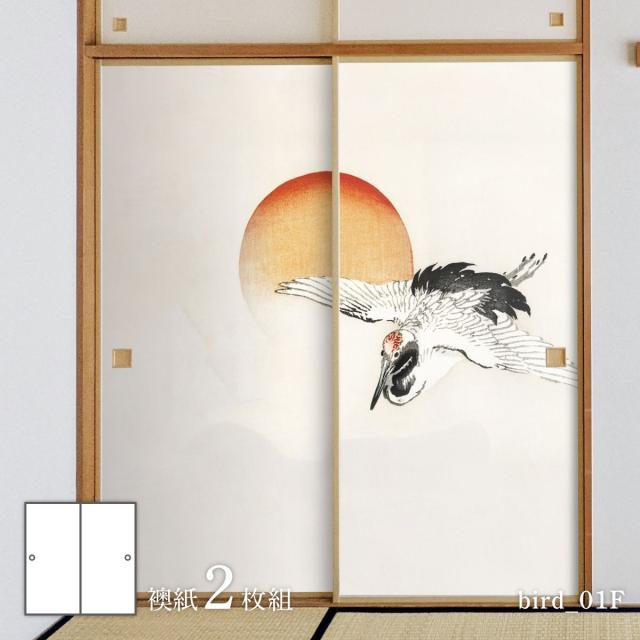 ふすま紙 アニマル デザイン 襖紙 アニマル デザイン 鳥の巻幸野楳嶺 旭日に鶴 鶴と朝日 bird_01F2枚1組 水で貼るタイプ 幅91cm×長さ182cm アサヒペン