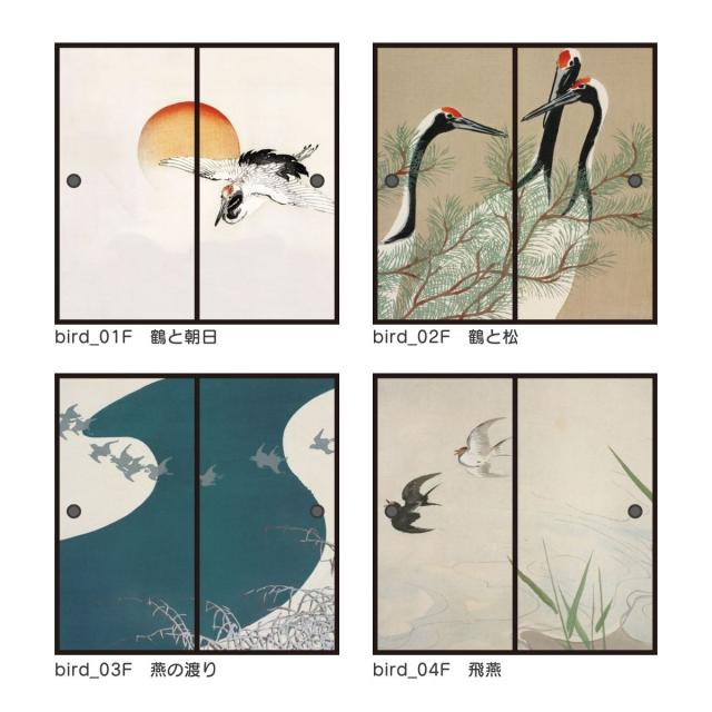 10柄)bird_01F 鶴と朝日、bird_02F 鶴と松、bird_03F 燕の渡り、bird_04F 飛燕、bird_05F オシドリ、bird_06F 孔雀1、bird_07F 孔雀2、bird_08F ジョウビタキ、bird_09F 鷺の食事、bird_10F 白鷹