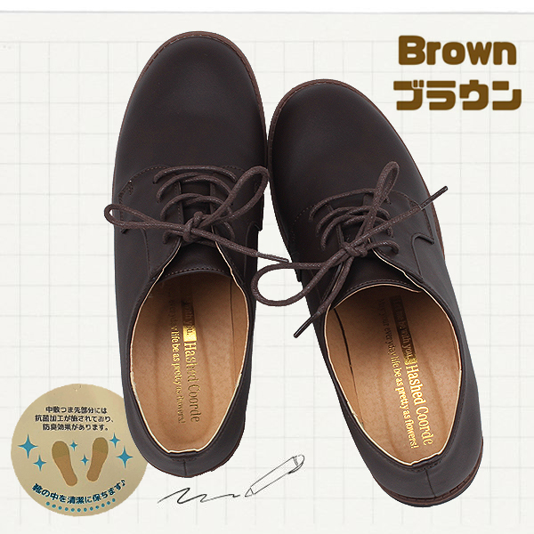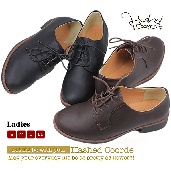 レースアップシューズ レディース ブラック ブラウン カジュアル オックスフォードシューズ プレーントゥ シンプル ナチュラル 紐靴 マニッシュ ハッシュドコーデ Hashed Coorde HC2906F
