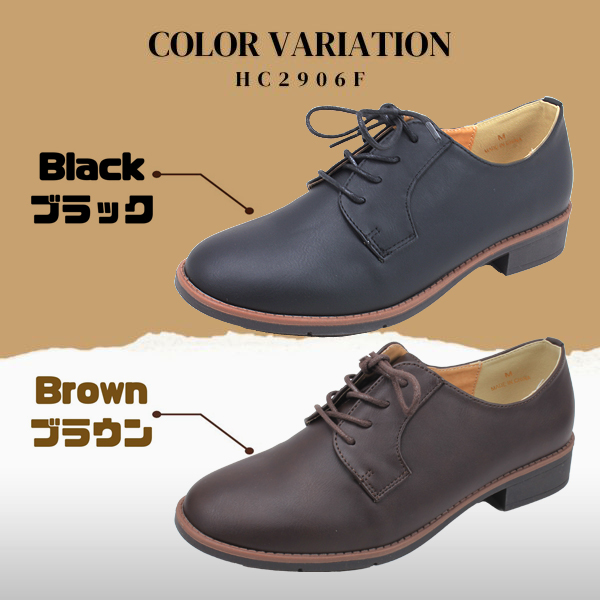 レースアップシューズ レディース ブラック ブラウン カジュアル オックスフォードシューズ プレーントゥ シンプル ナチュラル 紐靴 マニッシュ ハッシュドコーデ Hashed Coorde HC2906F 【レディース】