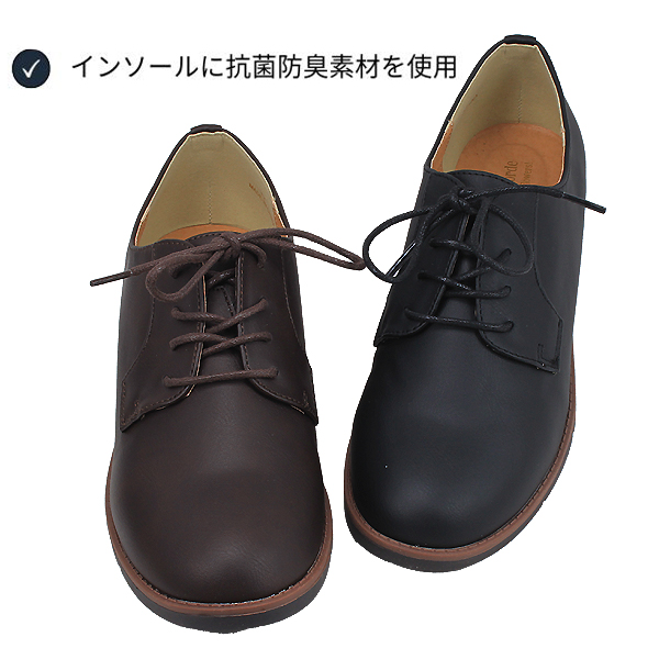 1足は持っていたい定番デザインのプレーントゥオックスフォードシューズです。内側はふわふわのメッシュで包み込まれるような履き心地、カチっと感もありつつ固くなり過ぎない、幅広く履けるシューズです。中敷に抗菌素材を使用しています。