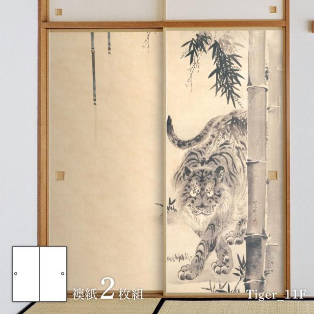 ふすま紙 アニマル デザイン 襖紙 虎の巻河鍋暁斎 竹虎之図 水墨画 竹林の虎 Tiger_11F2枚1組 水で貼るタイプ 幅91cm×長さ182cm アサヒペン