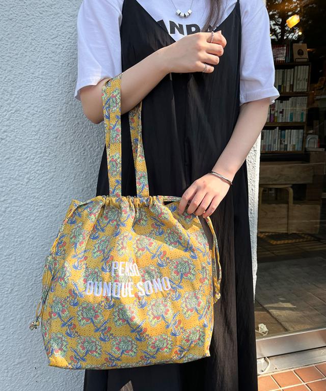 新作 aristella e.e.p. 巾着 ラタプリント トートバッグ レディース 軽量 大きめ a4 大容量 肩掛け 巾着バック 巾着トート エコバッグ マチ広 通勤 通学 ボタニカル ナチュラル おしゃれ