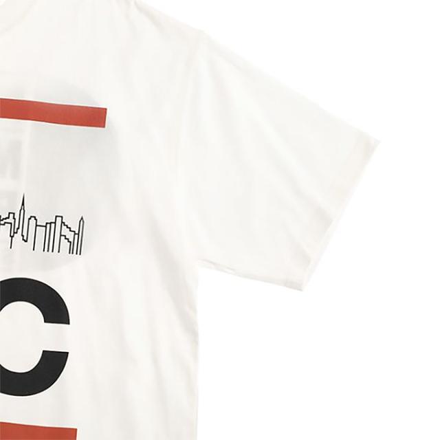 フロントにはNYカルチャーをイメージしたグラフィック、バックにバスケットボールをモチーフにしたグラフィックをプリントで落とし込んだデザイン。