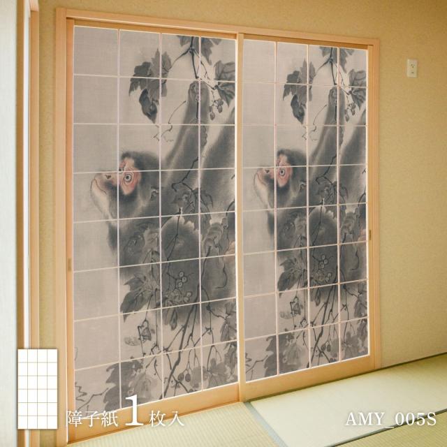 障子 アニマル デザイン障子紙 猿の巻 河鍋暁斎 ぶらさがる猿図 AMY_005S 1枚入り のりで貼るタイプ 幅91cm×長さ182cm アサヒペン