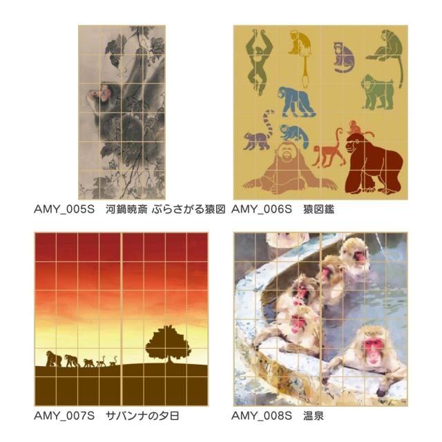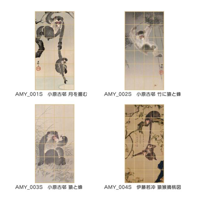 10柄)AMY_001S 小原古邨 月を握む、AMY_002S 小原古邨 竹に猿と蜂、AMY_003S 小原古邨 猿と蜂、AMY_004S 伊藤若冲 猿猴摘桃図、AMY_005S 河鍋暁斎 ぶらさがる猿図、AMY_006S 猿図鑑、AMY_007S サバンナの夕日、AMY_008S 温泉、AMY_009S ゴリラ、AMY_010S オラウータン