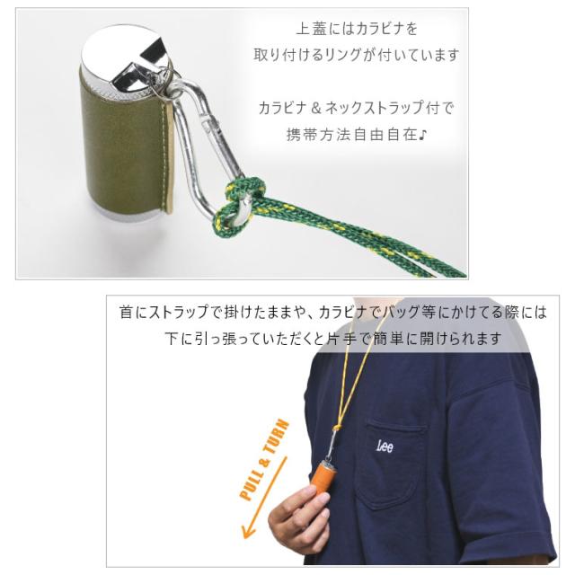 栃木レザー 携帯灰皿(シリンダー) mobile ashtray レザーケース レザーカバー カラビナ ネックストラップ アウトドア キャンプ フェス 持ち運び 革 本革 レザー 牛革 cow プレゼント ギフト 日本製