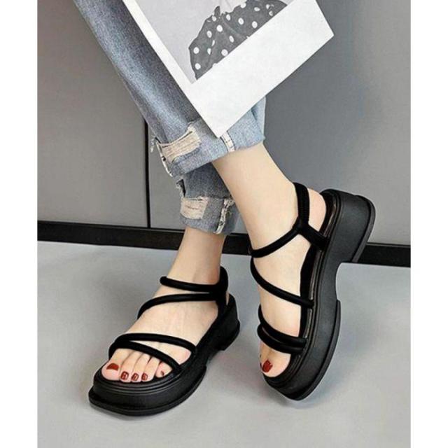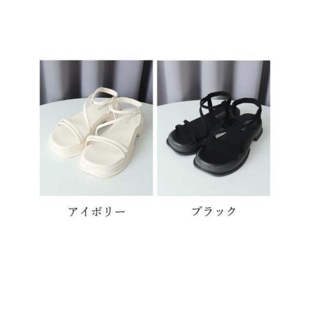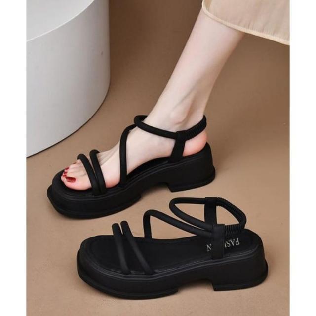 細めのストラップは女性らしい足元を演出する厚底サンダル。