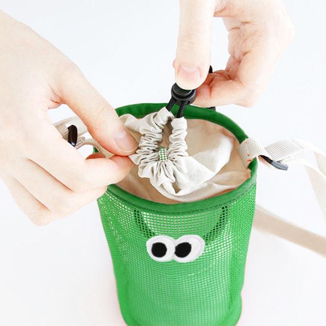 新作 目玉デザイン メッシュ ボトルホルダー メンズ レディース 水筒ホルダー ドリンクホルダー ボトルカバー ショルダー 肩掛け 斜めがけ 縦型 バケツ型 小さめ 軽量 おしゃれ かわいい ペットボトルホルダー 夏