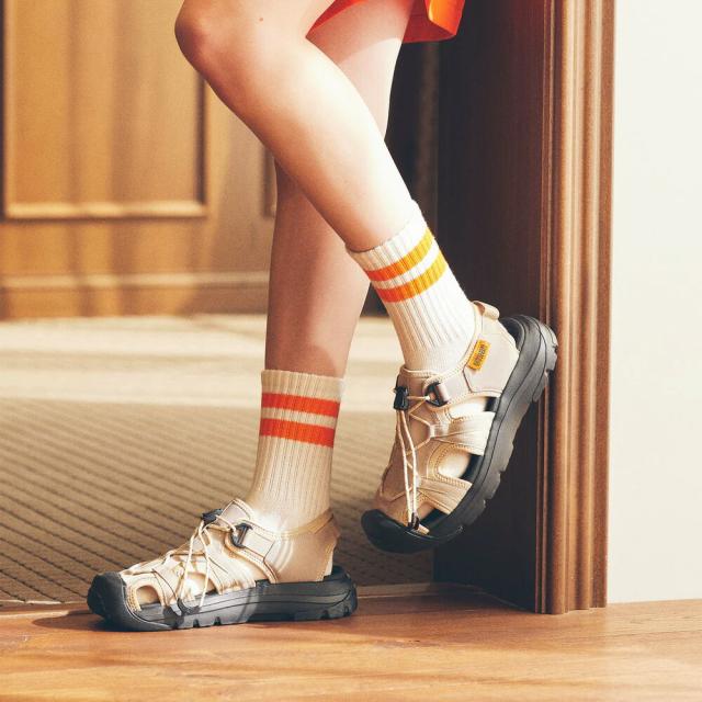 つま先とかかとにはラバーを配置し滑りにくい仕様に。