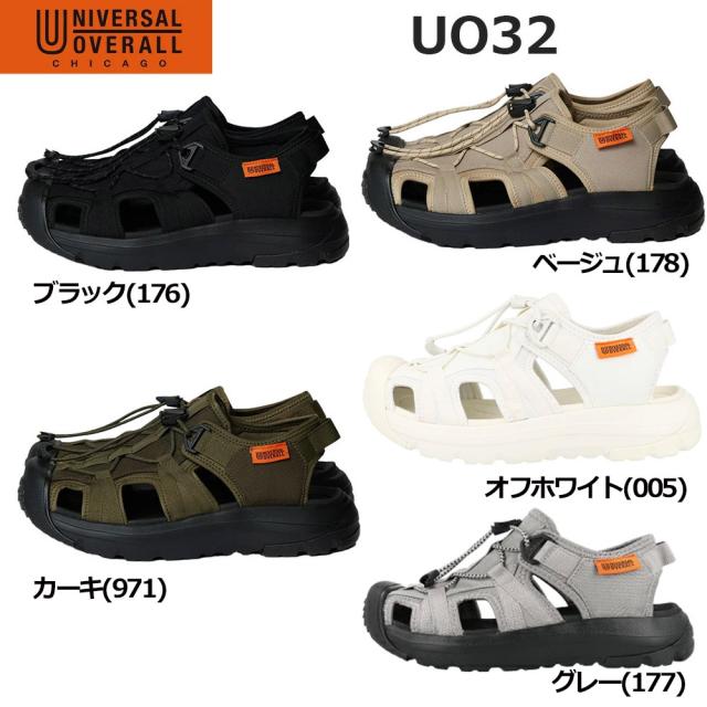 ユニバーサルオーバーオール UO32 サンダル スニーカー UNIVERSAL OVERALL UO32 レディース メンズ ブラック(176) ベージュ(178) カーキ(971) 23.0-27.0cm
