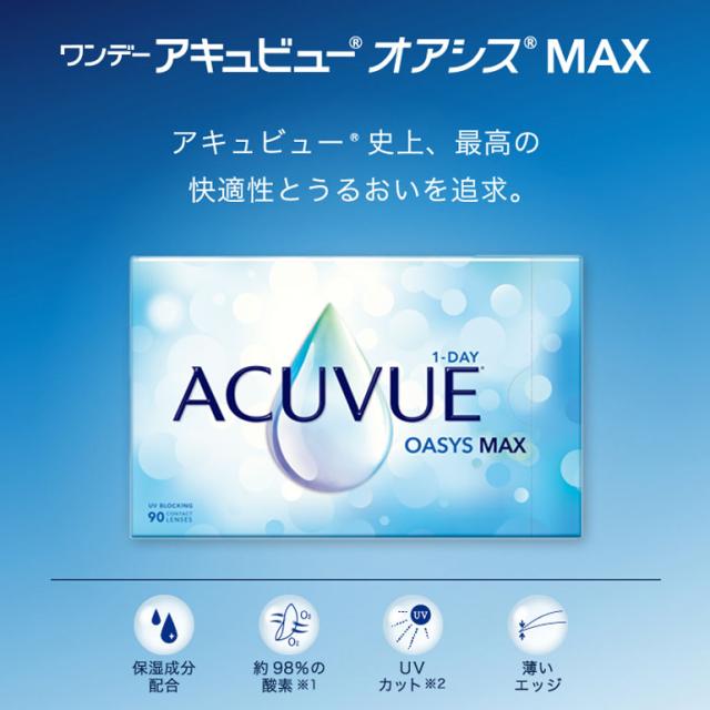 ワンデーアキュビューオアシスMAX ワンデー アキュビュー オアシス MAX 1日使い捨て 一日使い捨て コンタクト ジョンソン・エンド・ジョンソン Johnson & Johnson ワンデイ ワンデー アキュビュー acuvue ACUVUE 1dayタイプ 1DAY 1日使い捨て ジョンソン&ジョンソン 1日使い捨てコンタクトレンズ 使い捨てコンタクトレンズ ワンデー J&J 1day 90枚入 大容量 ボリュームパック UVカット 紫外線 快適 うるおい 保湿成分 なめらか 涙液 安定 シリコーンハイドロゲル たっぷり酸素 クリアな視界 不快感 乾き 視界のぼやけ 光のノイズ ドリコン