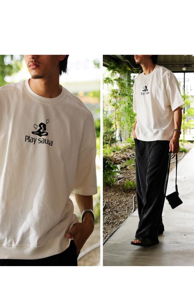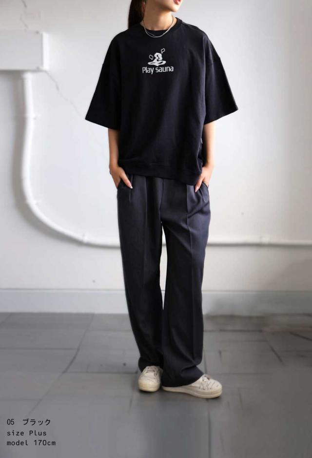 pls-0001 半袖 プルオーバー 綿100 丸首 スウェット ロゴ 配色 バックデザイン 英字 ブランドロゴ 裾ラウンド ゆったり サイズ展開 シンプル ラフ リラクシー 大きめ ユニセックス