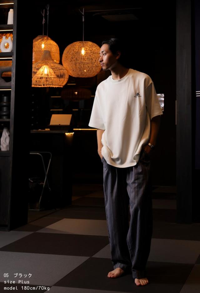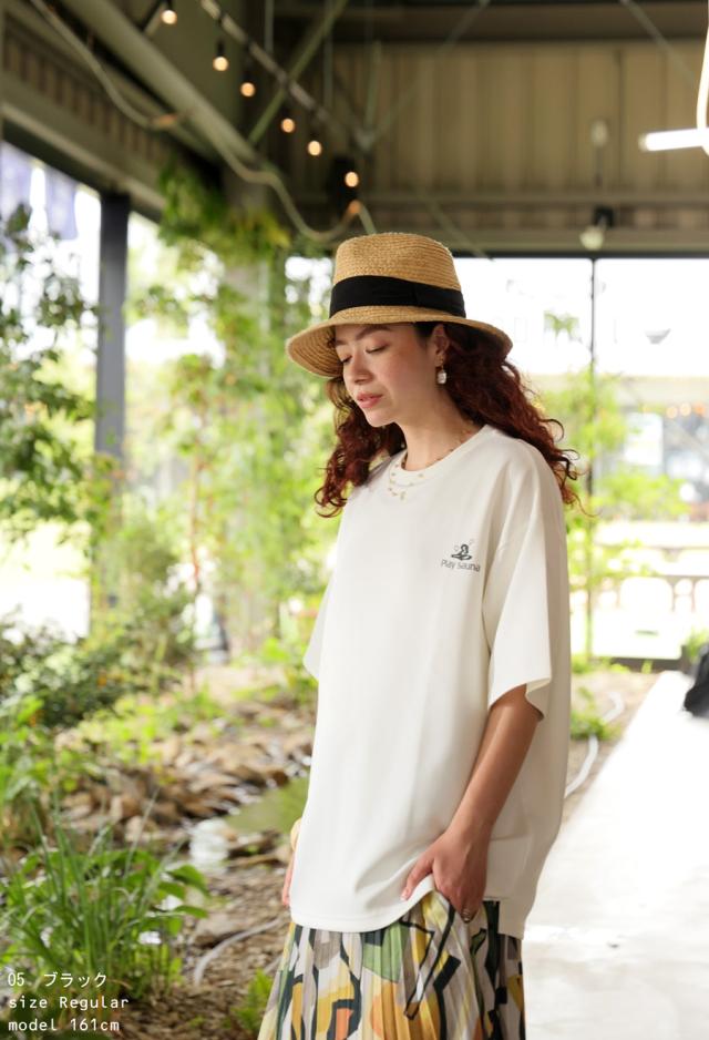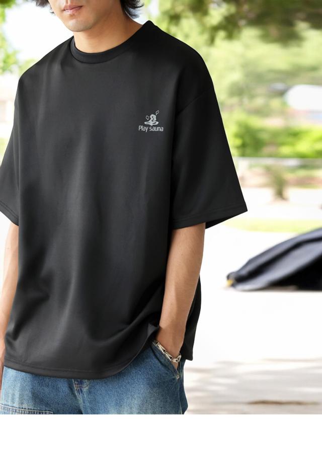 pls-0006 半袖 五分袖 クルーネック リブ プリント 配色 ロゴ ロゴプリント ワンポイント ポンチ 伸縮 ゆったり サイズ展開 シンプル きれいめ ラフ ラフ着 大きめ ユニセックス