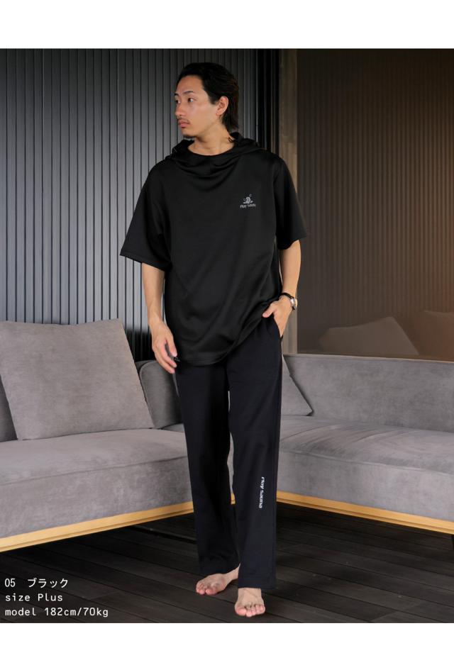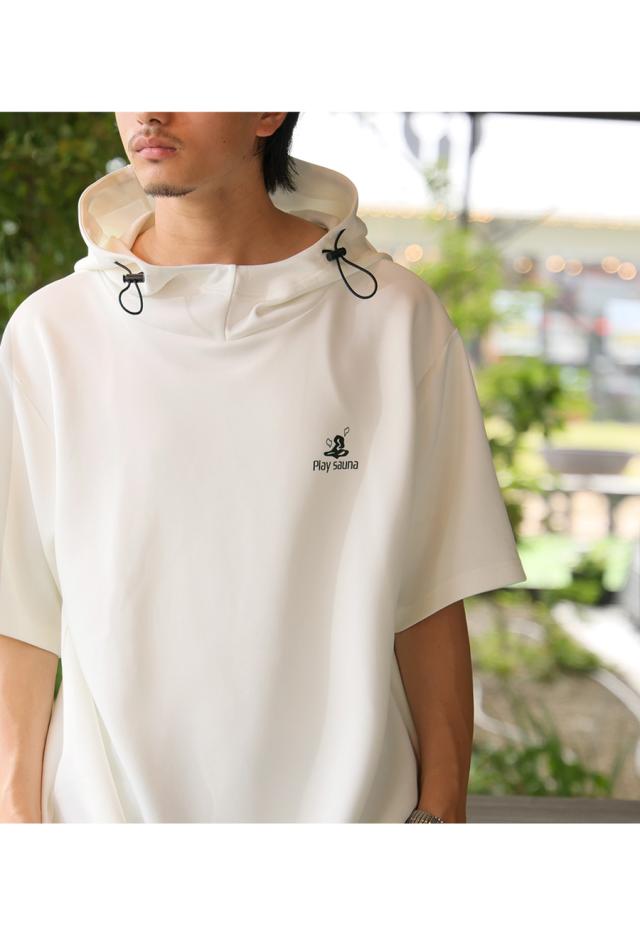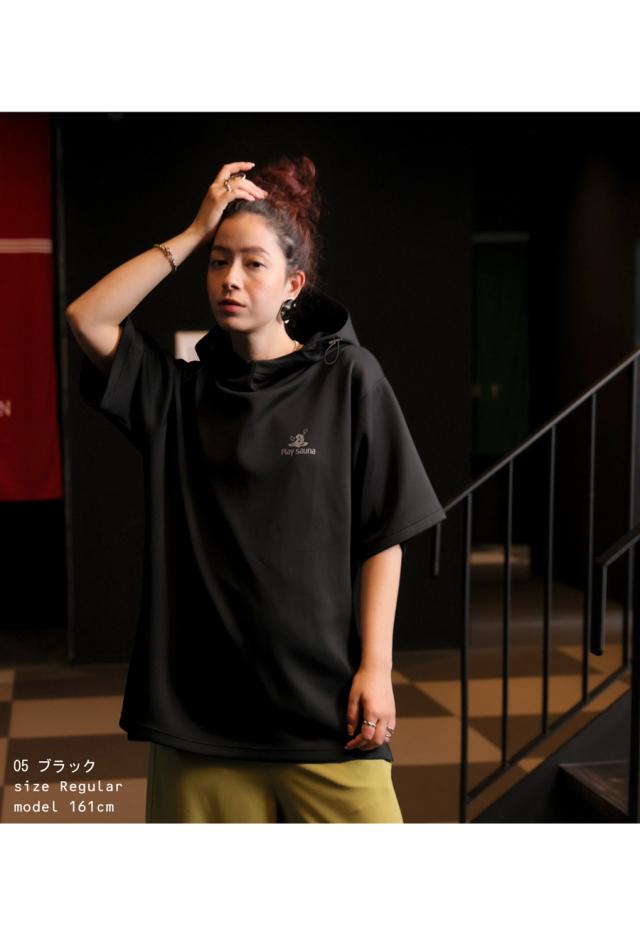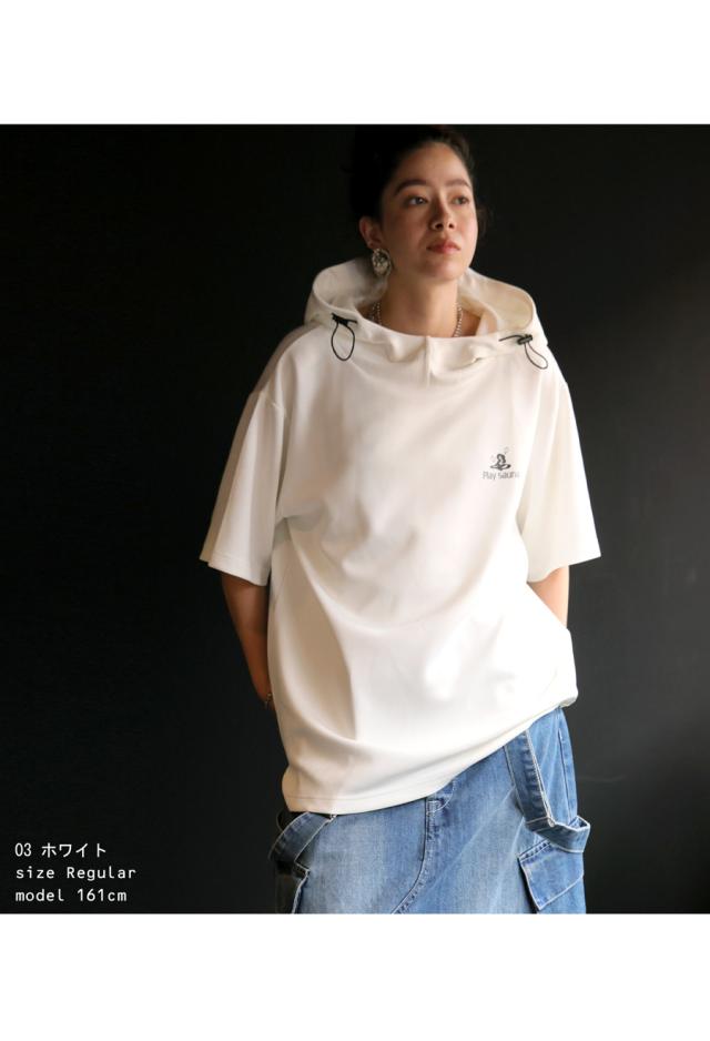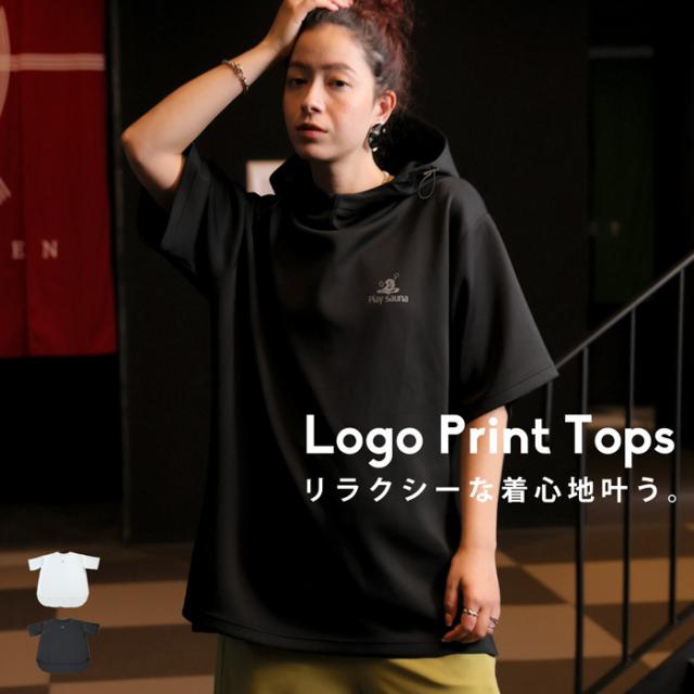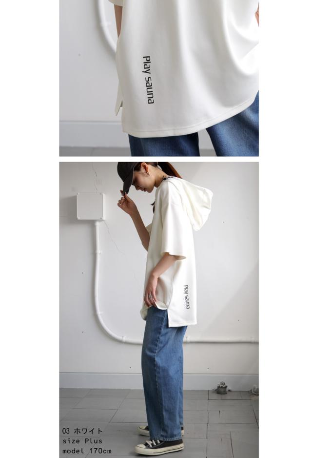 pls-0007 パーカー プルオーバー フード付き ドロスト ハイネック ロゴ ワンポイント スリット ゆったり サイズ展開 シンプル スポーティ 大きめ 半袖トレーナー ユニセックス