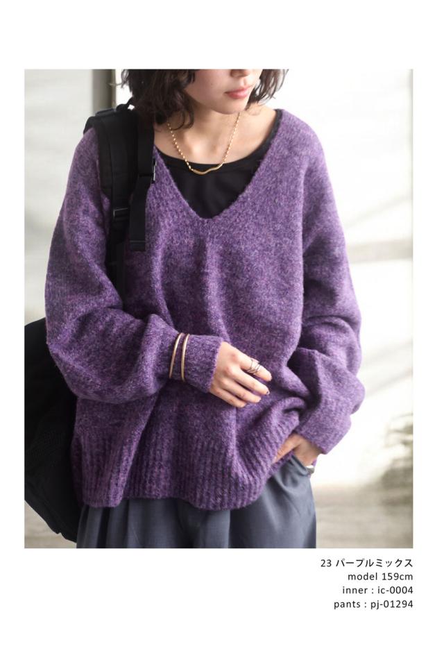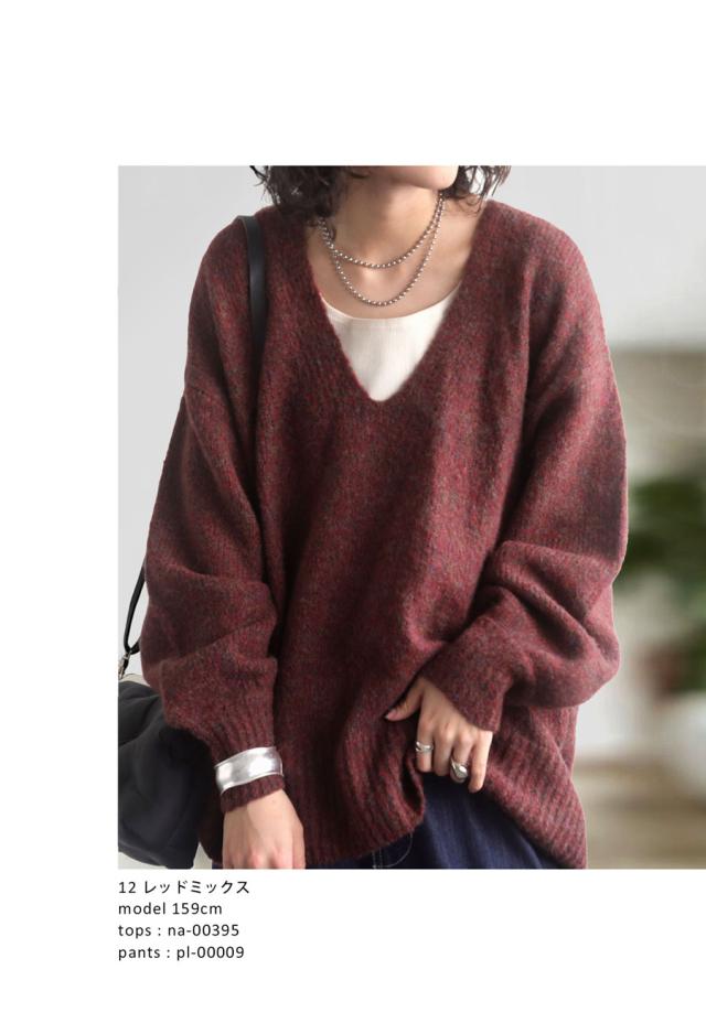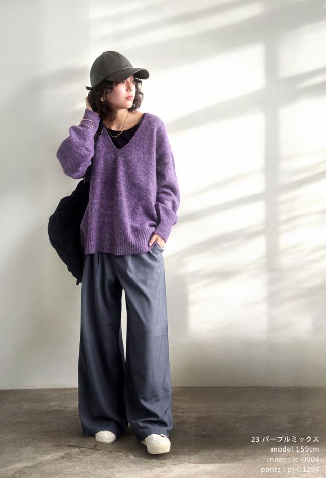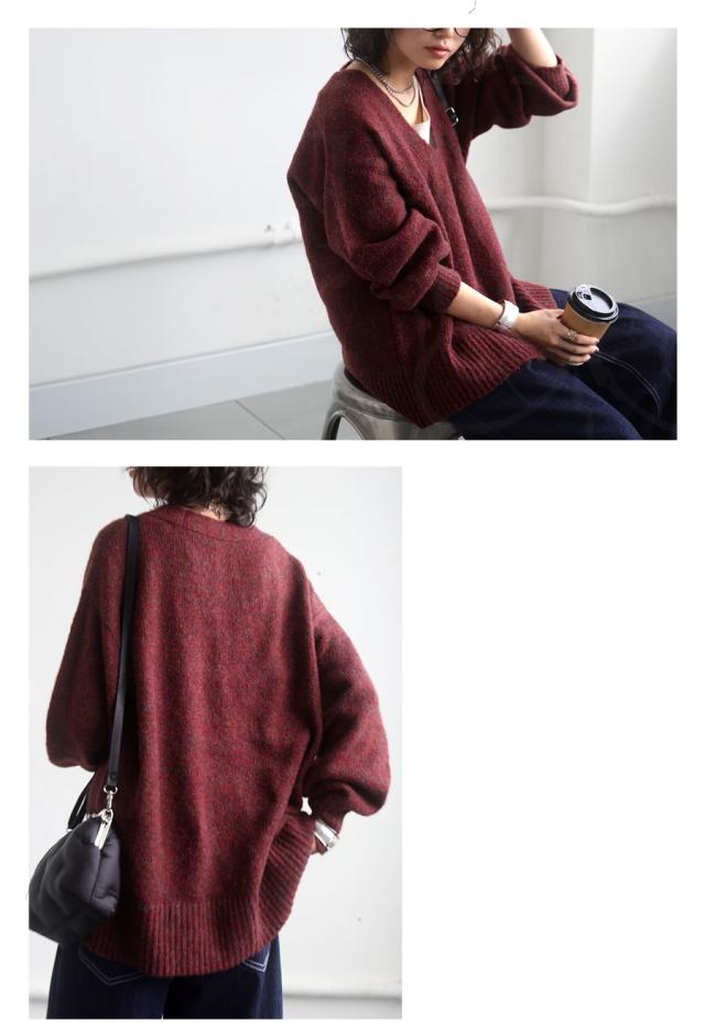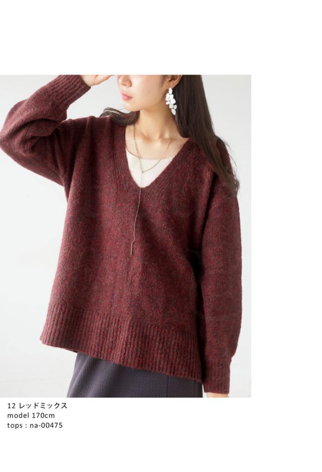 pn-00513 Vネック プルオーバー 被り ニットトップス リブ ゆったり シンプル きれいめ 上品体型カバー 細見え 華奢見え 着痩せ 大きめ 大きいサイズ セーター ニットプルオーバー