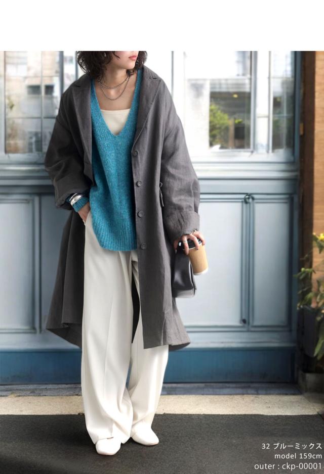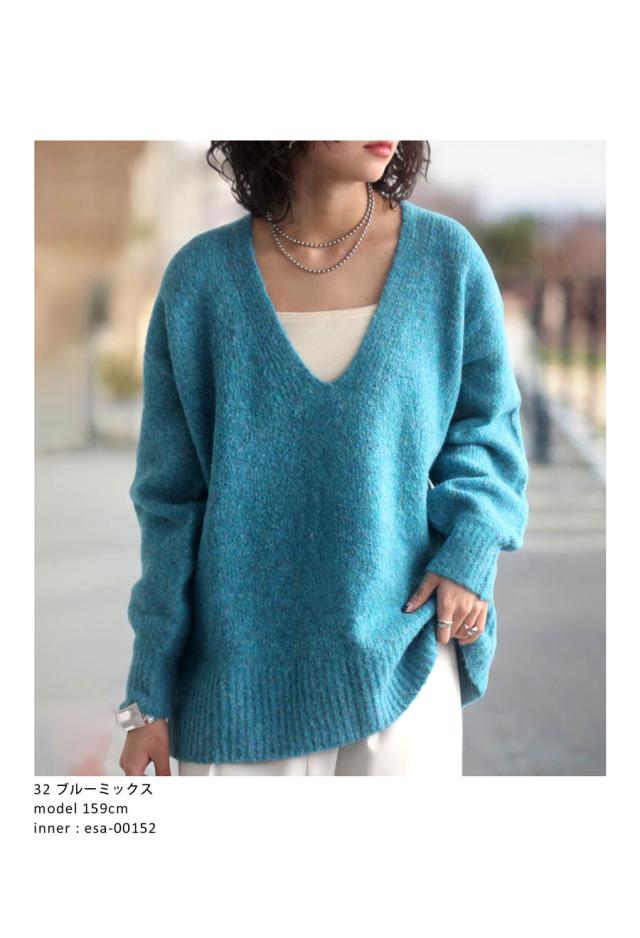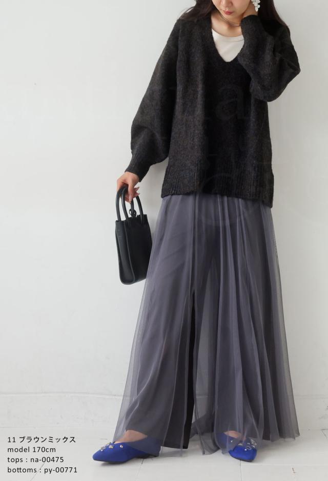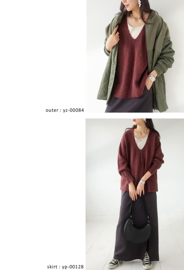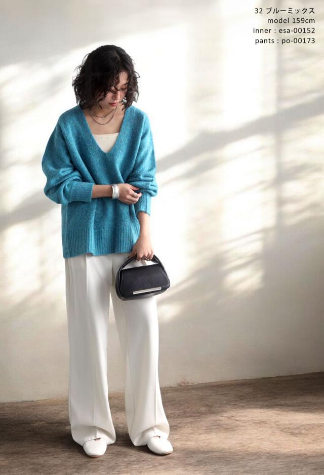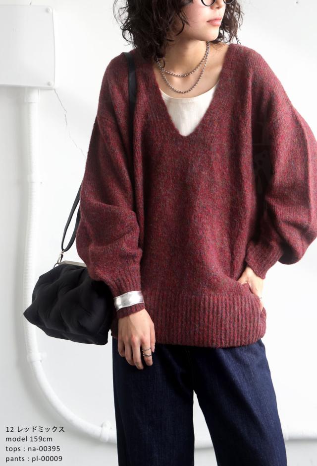 pn-00513 Vネック プルオーバー 被り ニットトップス リブ ゆったり シンプル きれいめ 上品体型カバー 細見え 華奢見え 着痩せ 大きめ 大きいサイズ セーター ニットプルオーバー
