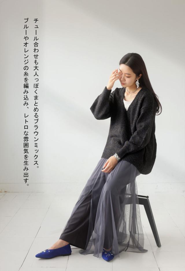 抜け感たっぷりで即こなれる『Vネックメランジニット』