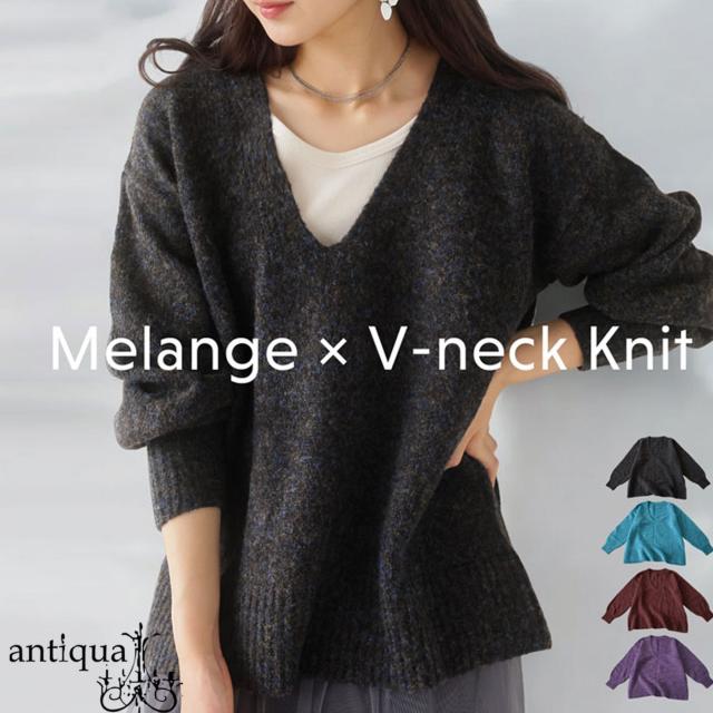 【検索ワード】Vネックニット ニット レディース トップス 長袖 Vネック プルオーバー 被り ニットトップス リブ メランジ生地 軽量 ゆったり シンプル きれいめ 上品 高級感 体型カバー 細見え 華奢見え 着痩せ 大きめ 大きいサイズ セーター ニットプルオーバー メランジニット antiqua アンティカ 大人 おしゃれ 10代 20代 30代 40代 50代 60代 秋 冬 お洒落 カジュアル かわいい かっこいい あんてぃか