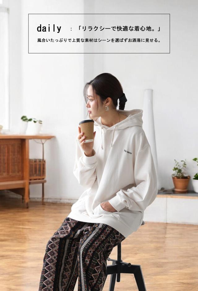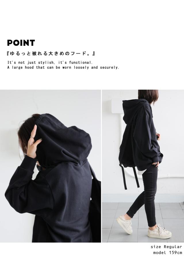 ・ゆったりかぶれる大きめのフード。