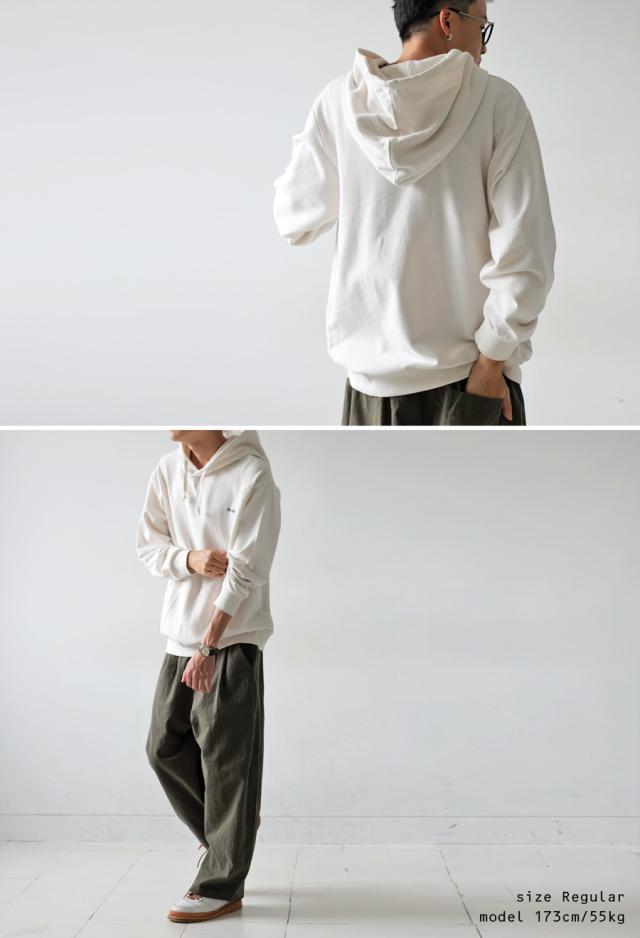 主張しすぎない刺繍ロゴで、お洒落度を一気に上げてくれる裏毛パーカー。