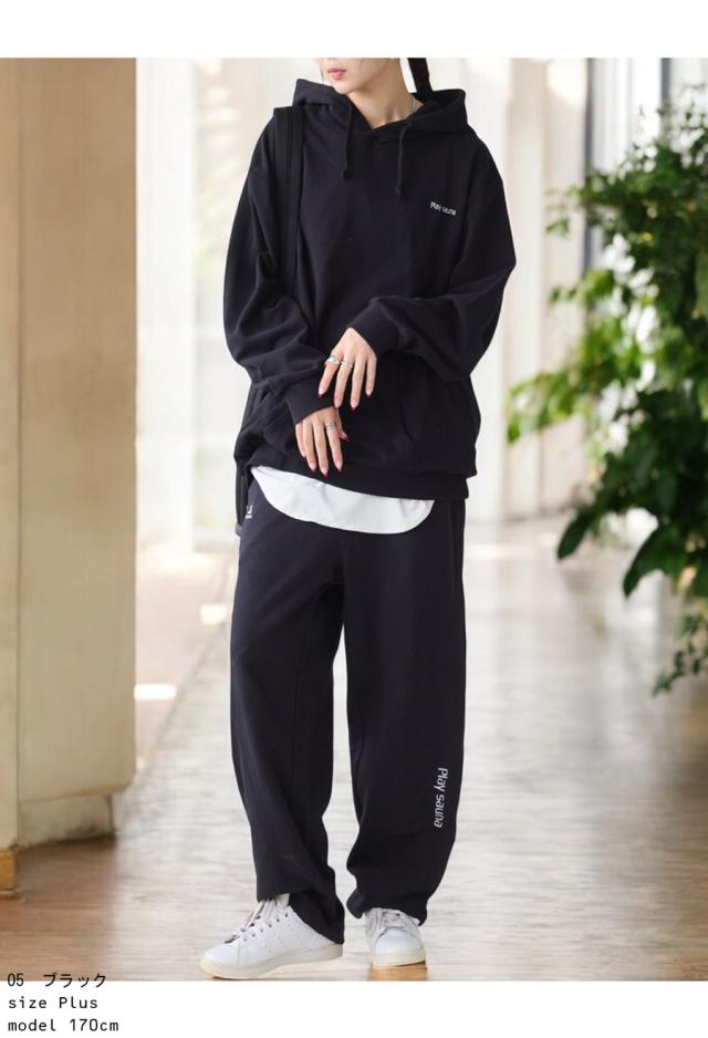 pls-0003z 長袖 綿100 ロゴ リブ 無地 ドロップショルダー ゆったり サイズ展開 シンプル ラフ ラフ着 楽着 体型カバー 着痩せ 大きめ トレーナー プルオーバー ユニセックス