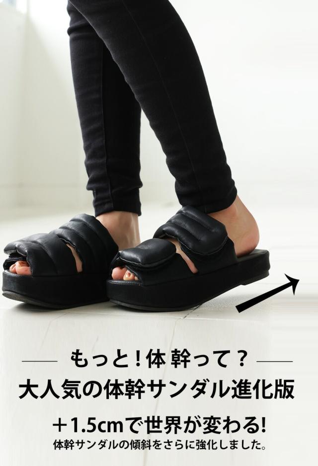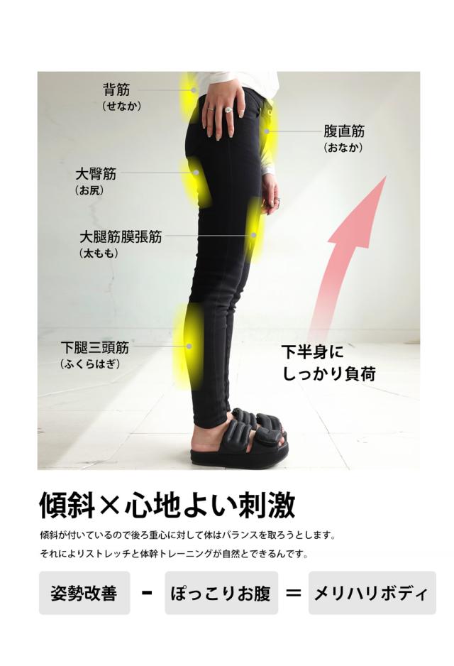 ap-00056 痛くない オープントゥ 厚底 傾斜ソール 体幹立ち 体幹トレーニング もっと体幹 軽量 立体 ふっくら 編み込みキルティング クッション 面ファスナー サイズ調整可 ながら運動