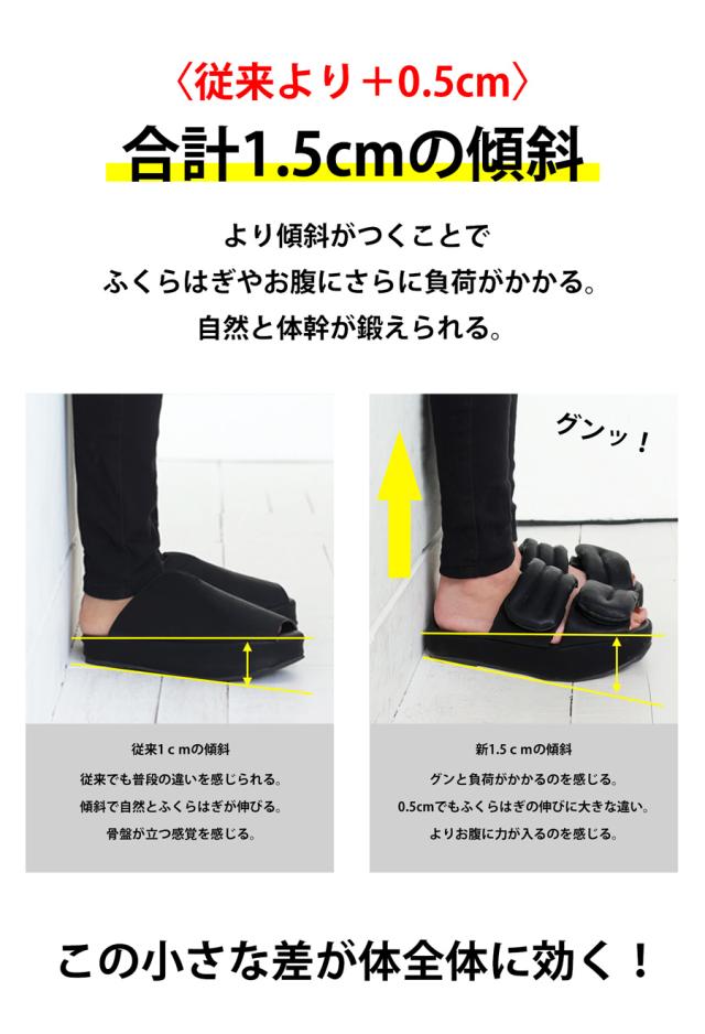 - 元々旧デザインのスリッポン型を持っていて良さを知ってての購入ですが、今回のはまた更に良いです!旧型より傾斜があるのですがもの凄く歩きやすく、なのに体幹トレーニングされてる感もちゃんとある!デザインも生...