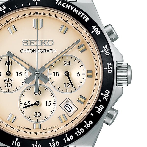 ヴィンテージデザインを現代風にアレンジしており、インデックスや針のデザイン、多列のメタルブレスレットで往年のセイコー クロノグラフらしさを踏襲しつつも、ソリッドなケース形状にあわせた新しいスタイルのデザインが特長です。
